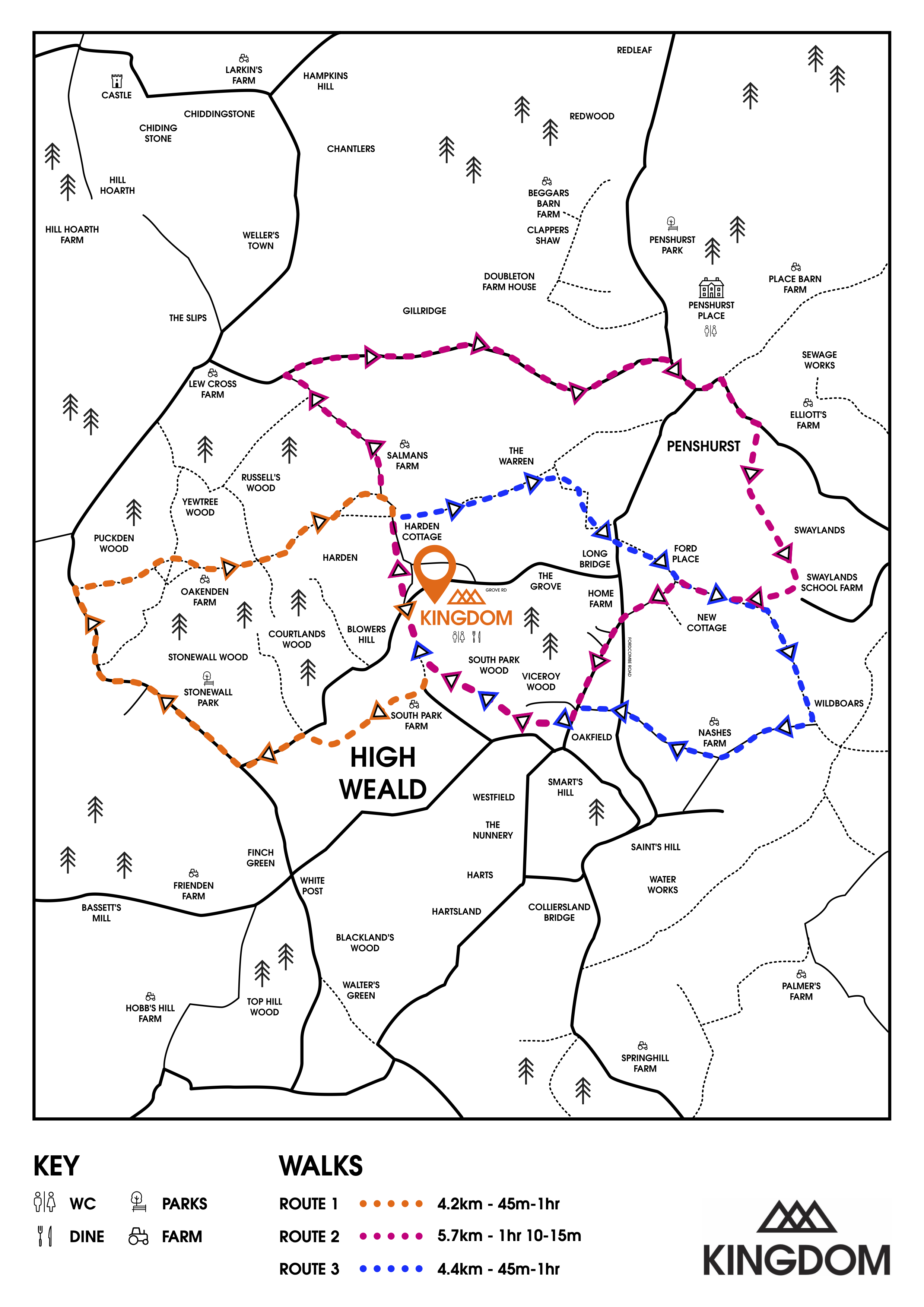 We’ve created a simple walking map featuring three different routes around Kingdom, each designed for different abilities and timeframes. Whether you’re looking for a gentle stroll, a family-friendly walk, or a longer route to stretch your legs, there’s something for everyone.
